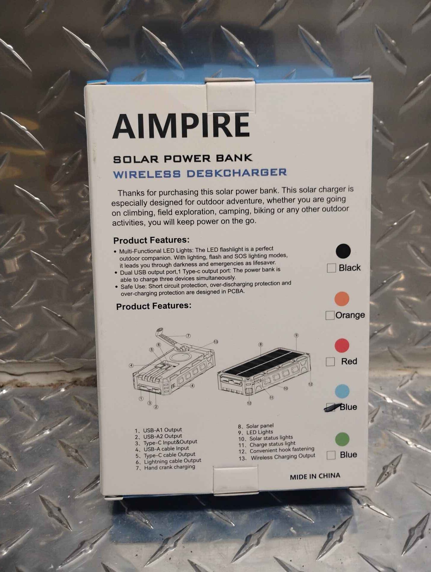 Solar wireless charger with 3 charger cables and hand crank
