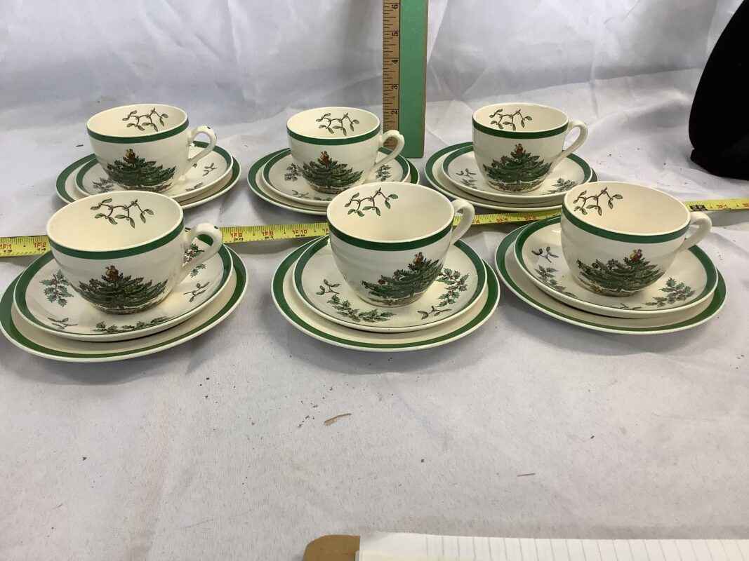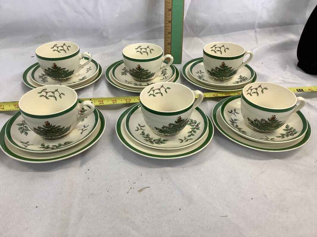 Spode Christmas Cups, Saucers and Lunch Plate (6)