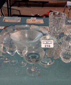 Stemware, covered jar, bowls, etc