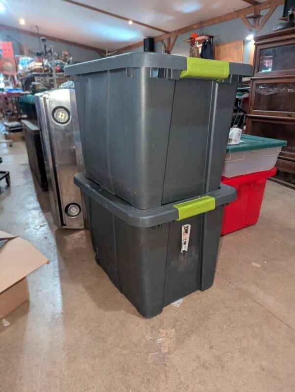 there are two large totes with lids under this lot number; bidding price is PER Tote/lid X2