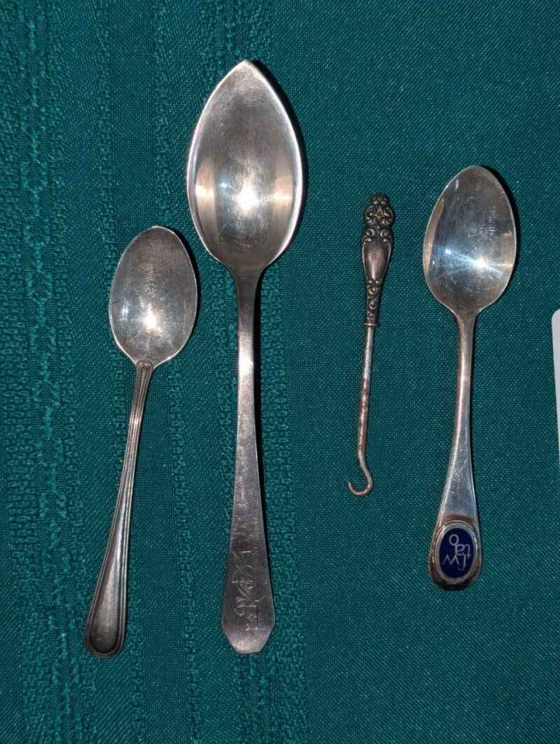 Sterling button hooker and spoons