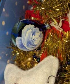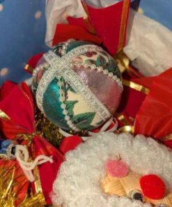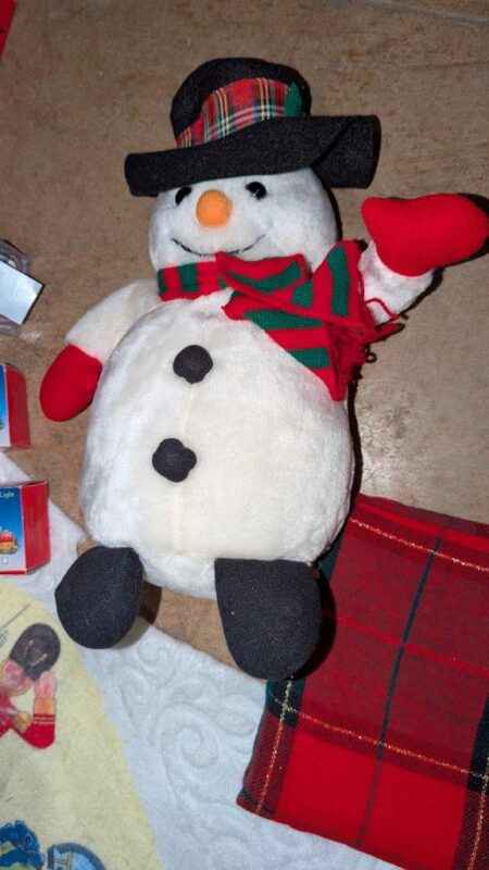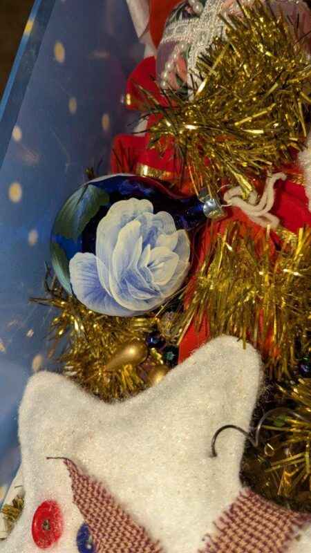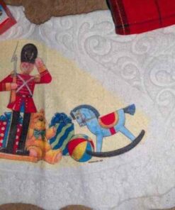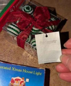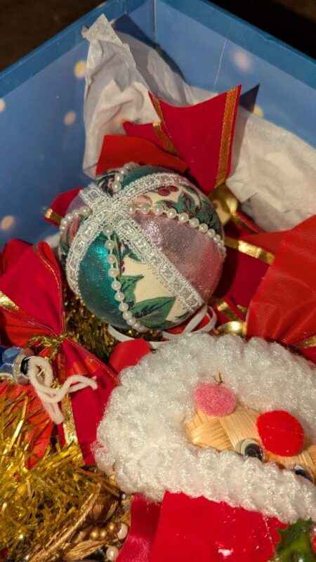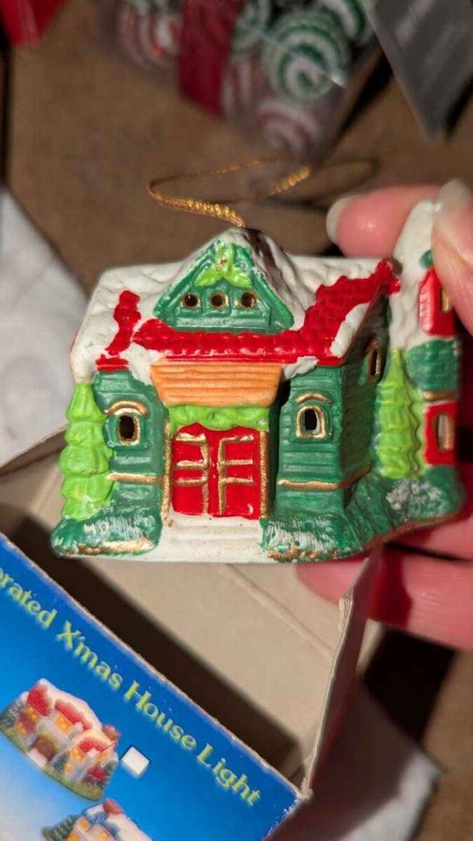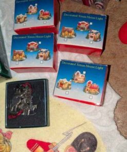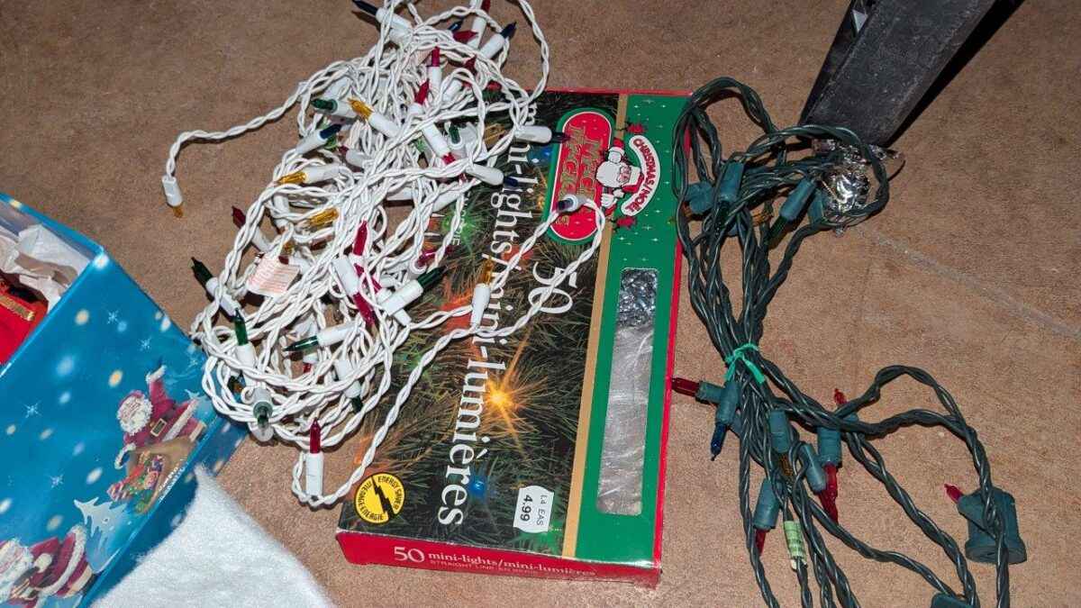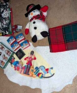 Tablecloth, tree skirt, tree ornaments, mini lights, etc