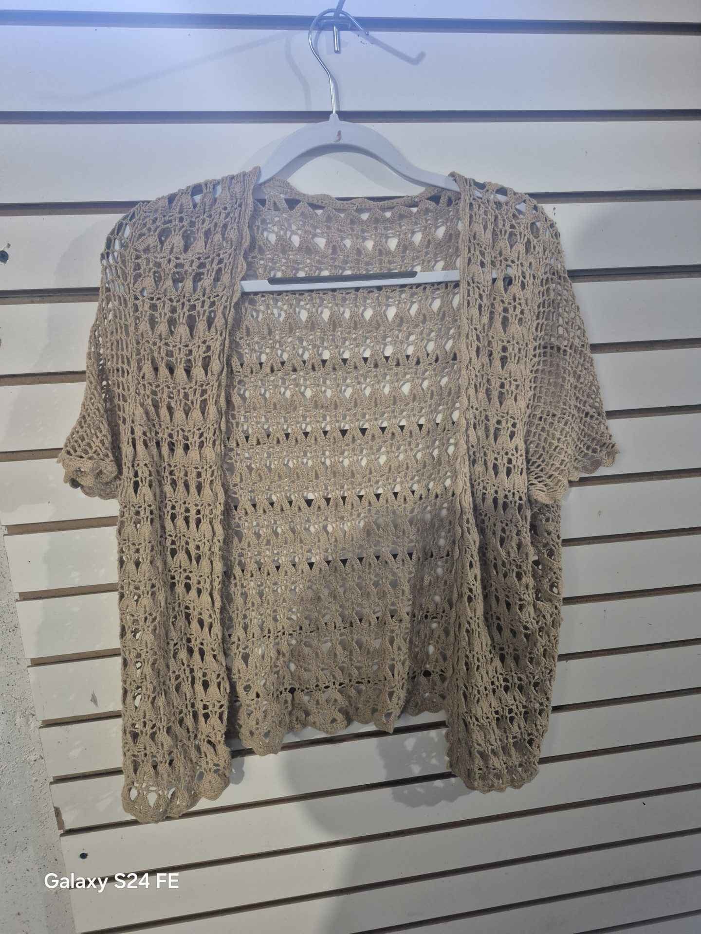 tan short sleeve cardigan