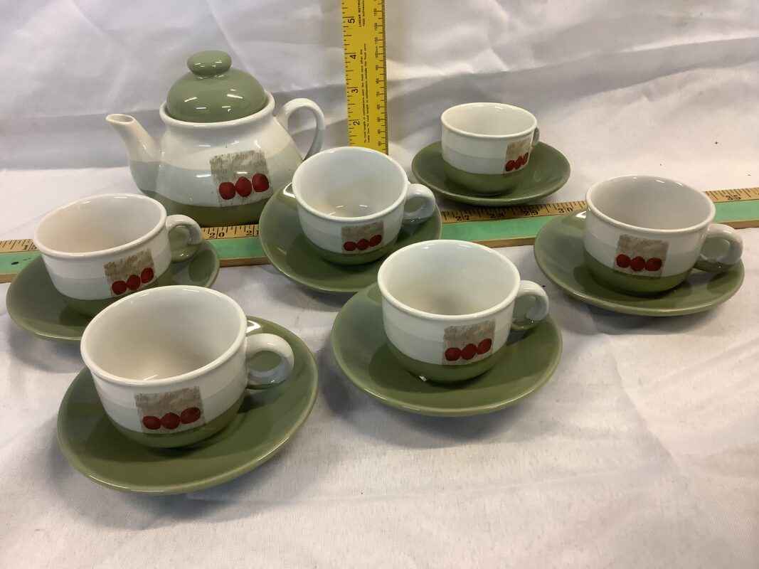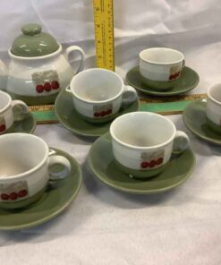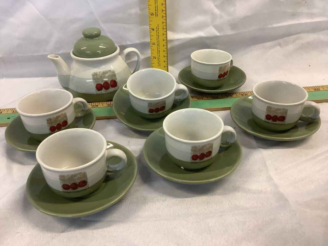 Tea Pot, cups and saucers