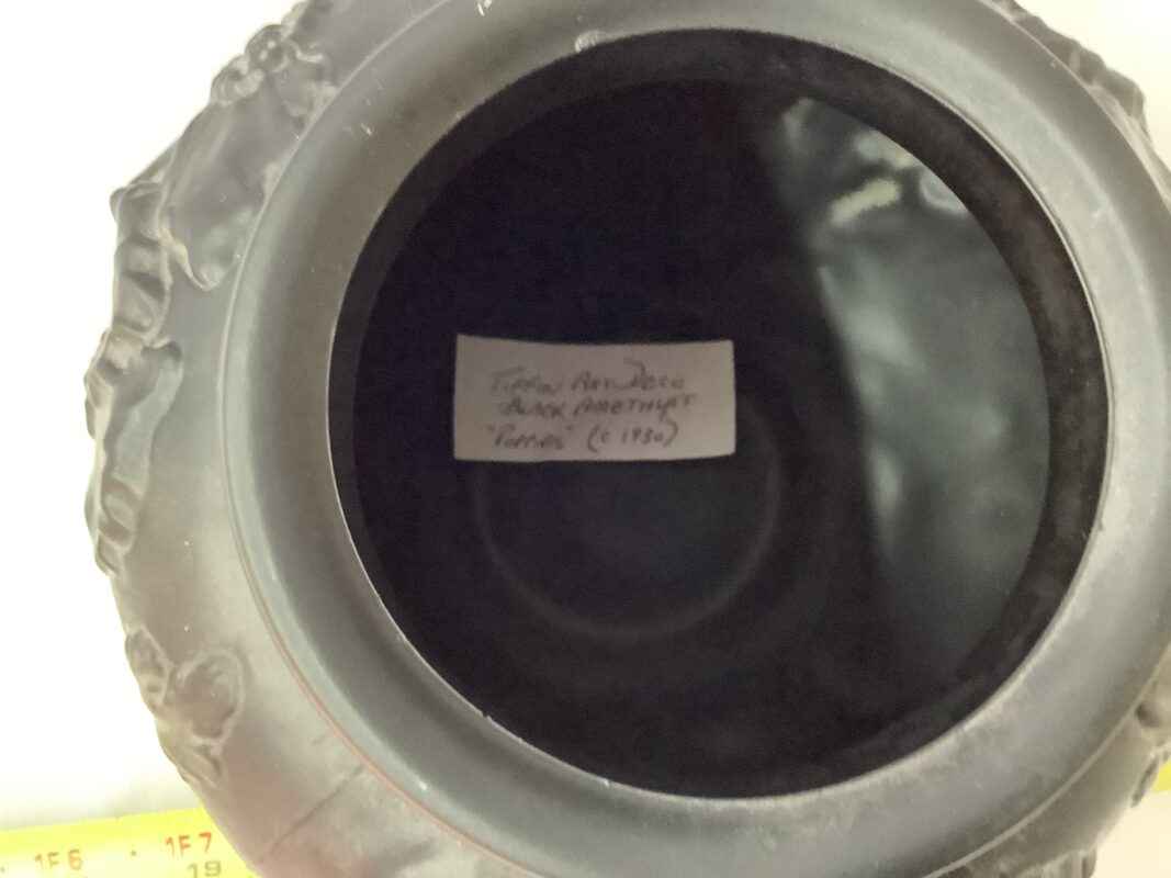 Tiffin Art Deco Bowl – Black china, (circa 1930), “Poppies”