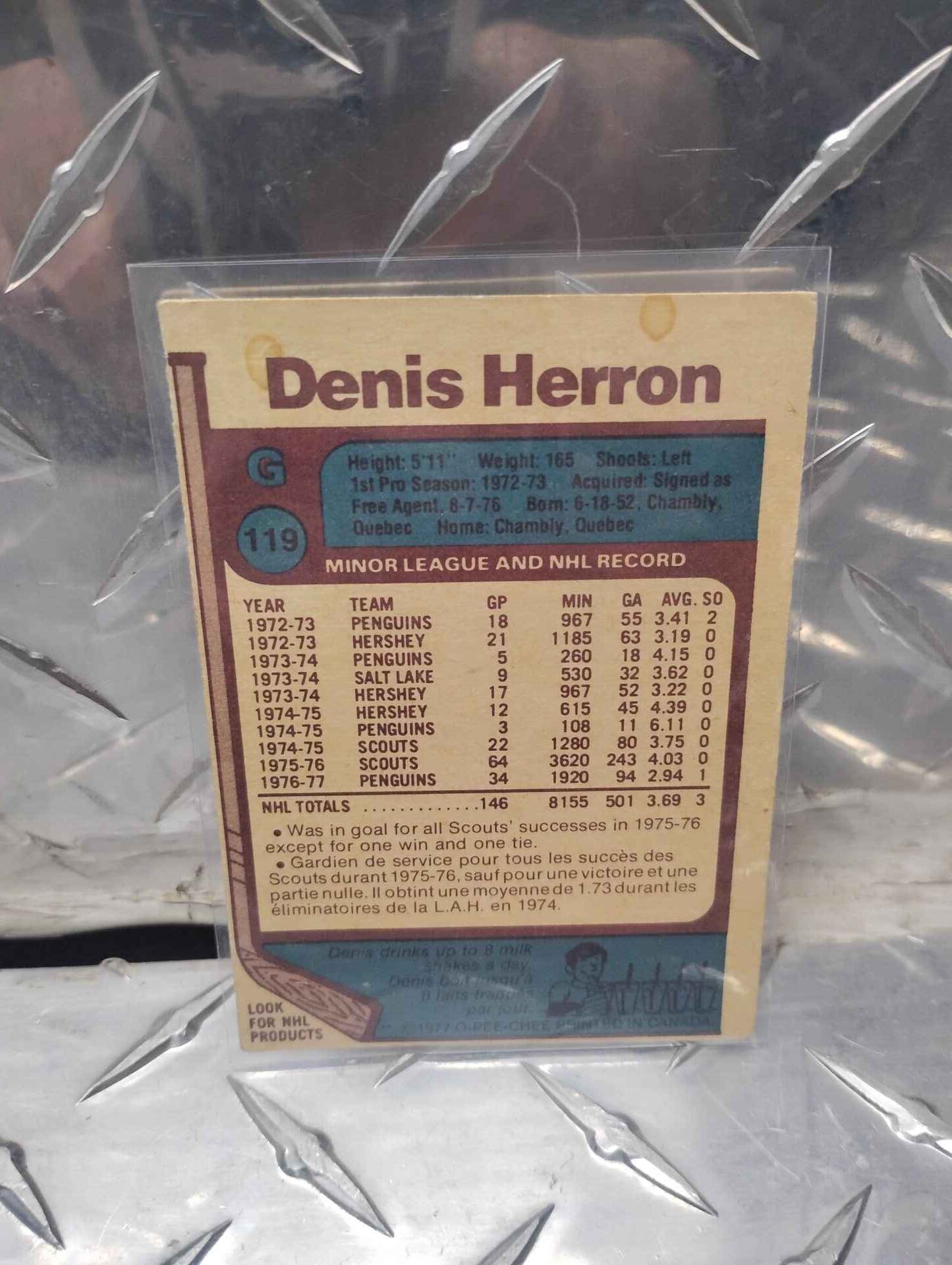 Denis Herron Pittsburgh Penguins card #119