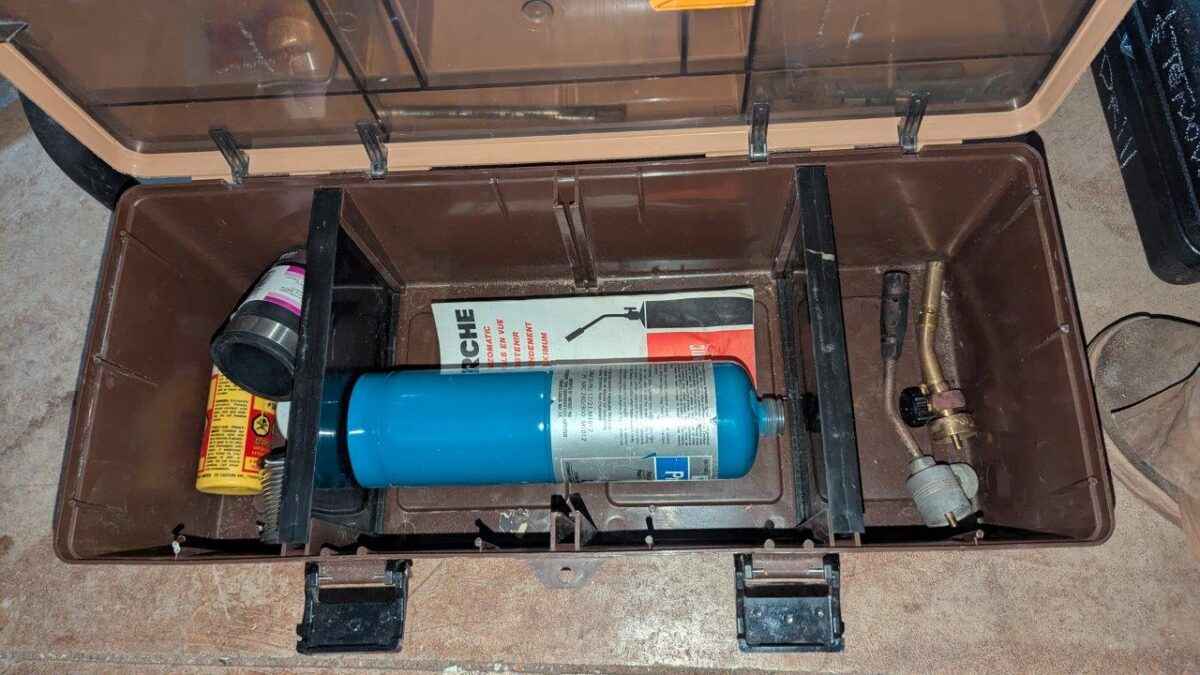 Torch set in plastic tool box