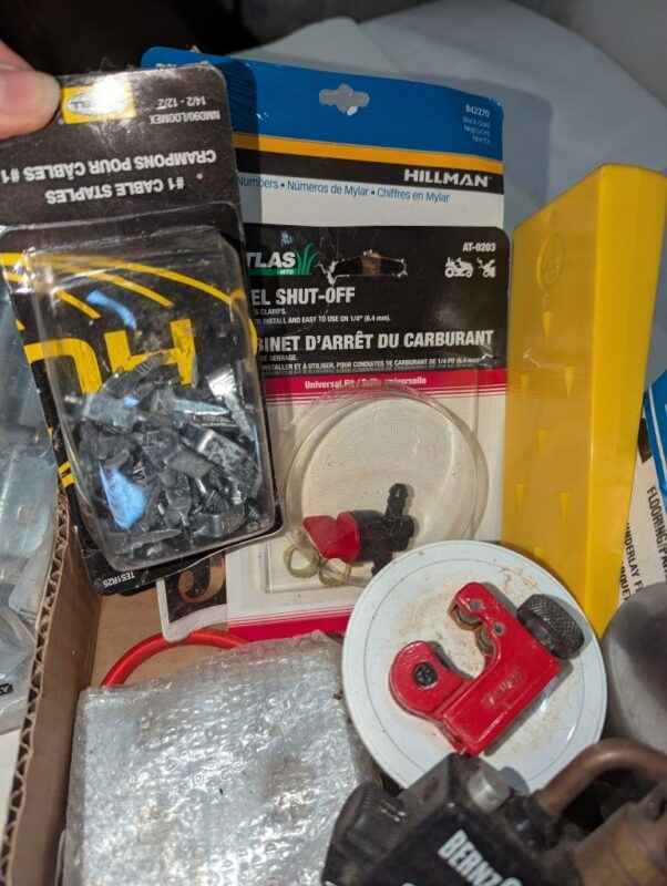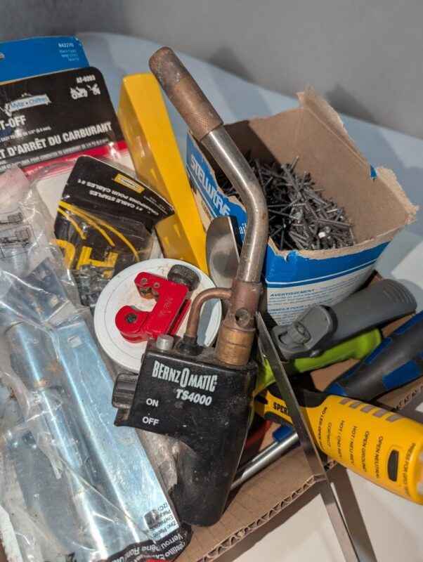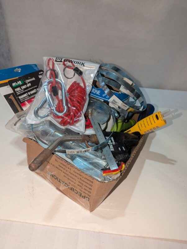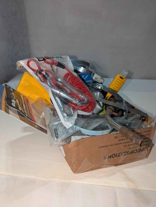 Torch tip, barrel lock, cable straps, angle finder, hardware, tester, etc