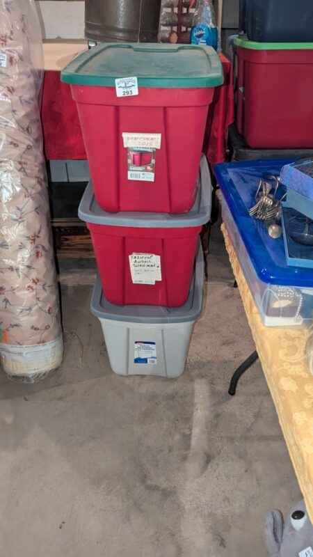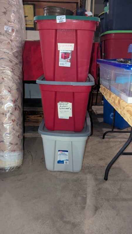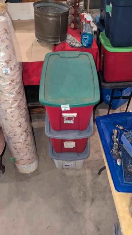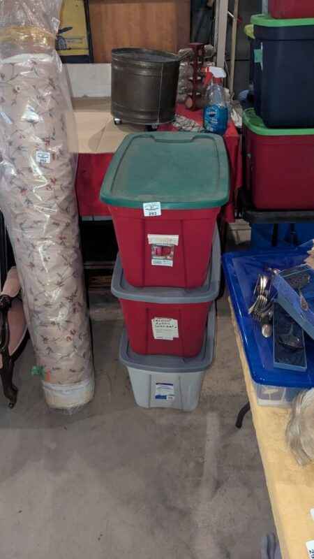there are three tote/lid combinations under this lot; Bidding price is PER tote/lid X3