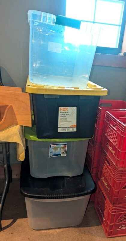 There are four bottoms and 3 lids under this lot number; bidding price is PER tote/lid combination X3