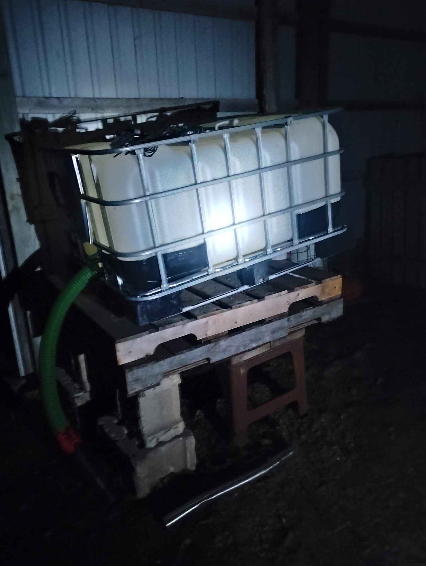 Tote with metal cage and pump