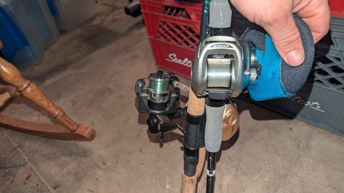 Trio of assorted fishing rods/reels