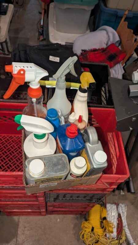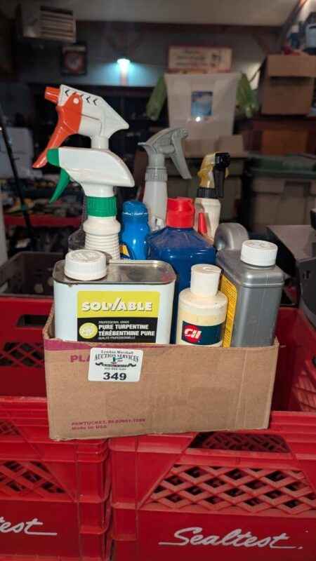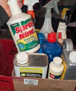 Turpentine, CLR, Wood Filler, Spray nine, etc