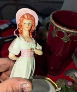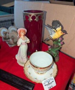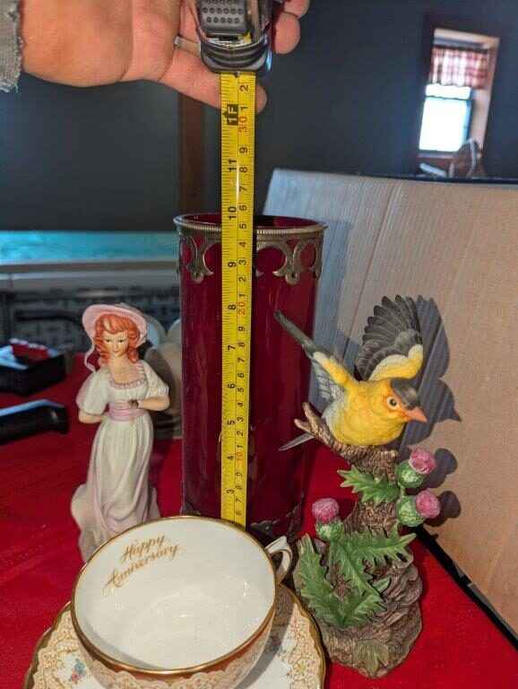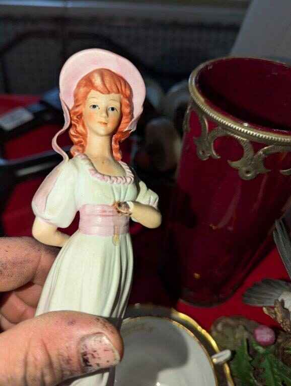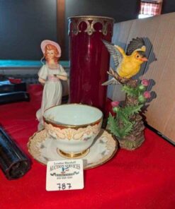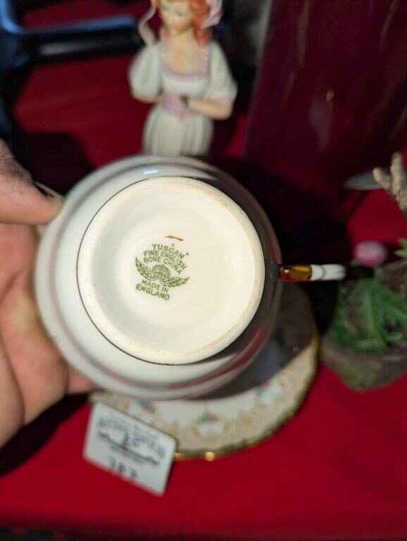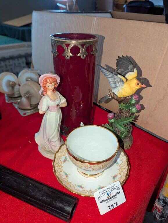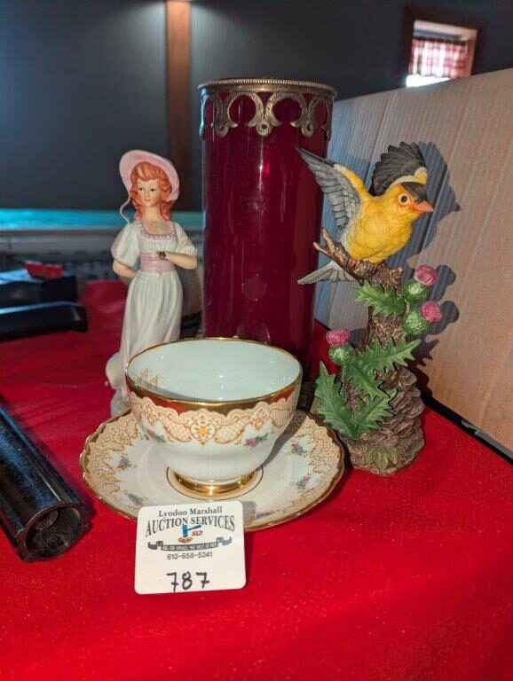 Tuscan Teacup/saucer, Bird and Girl Figurines and candle