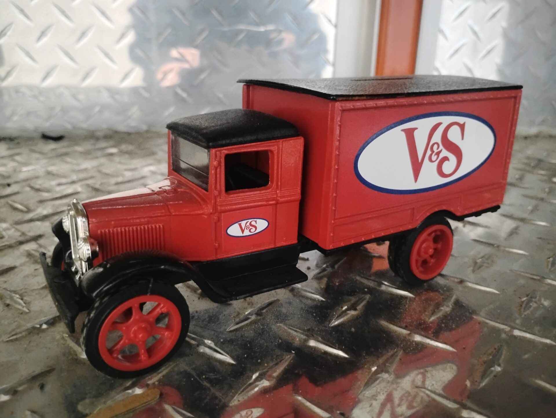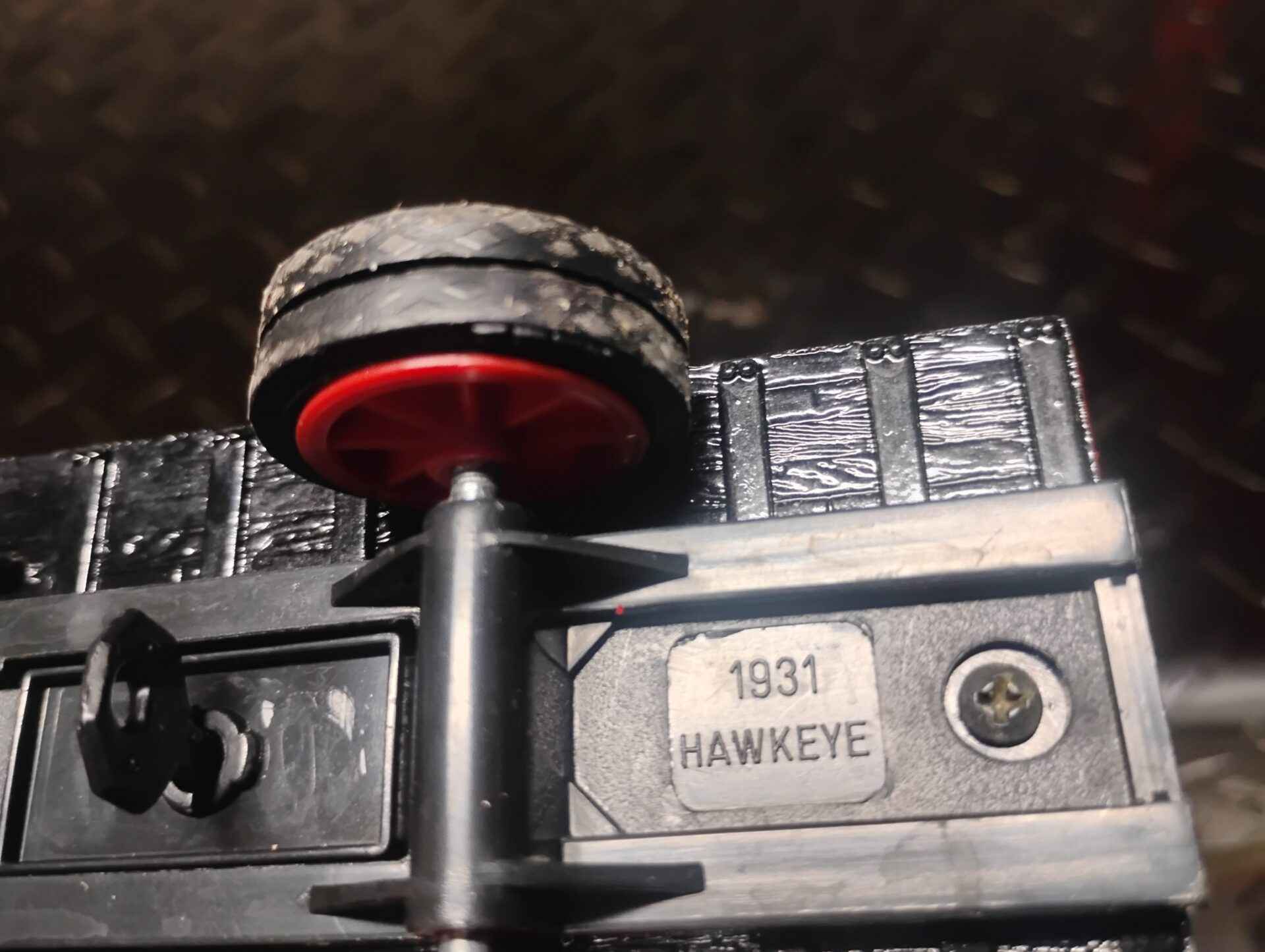 V8 1931 Hawkeye diecast metal Bank missing bottom coin holder