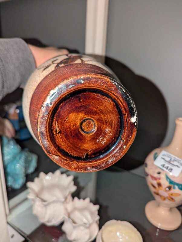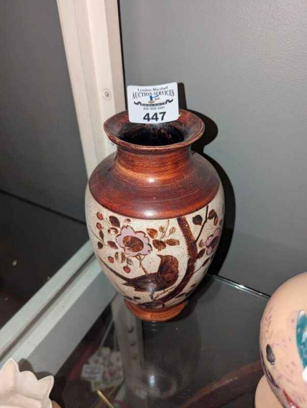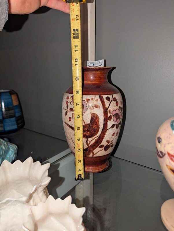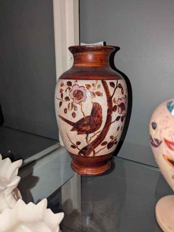 Vase with bird in tree pattern