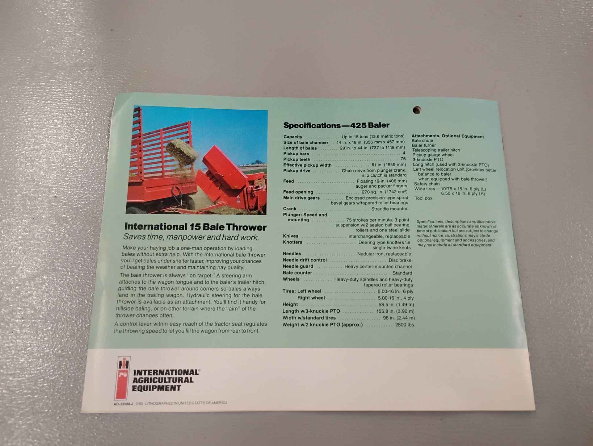 Vintage international 425 baler literature