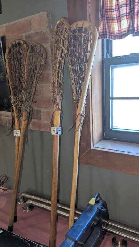 Vintage Lacrosse sticks with leather weaving