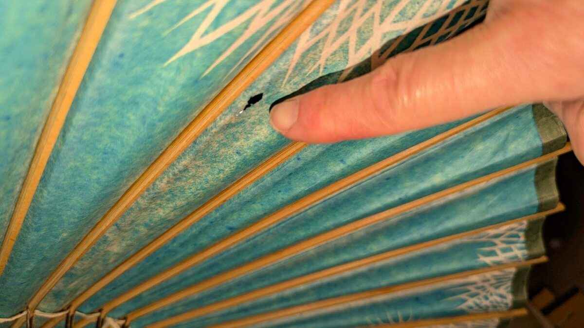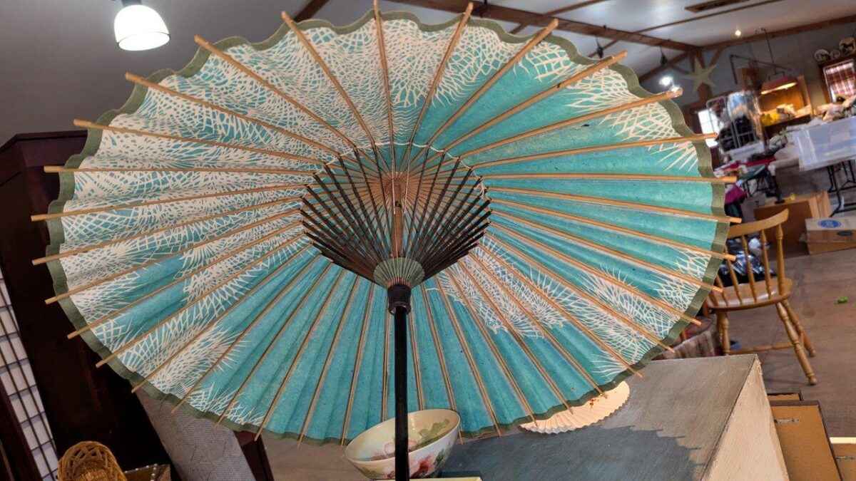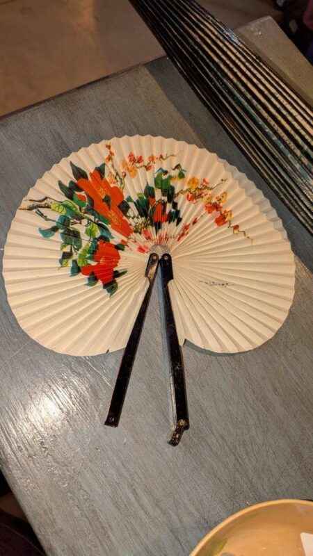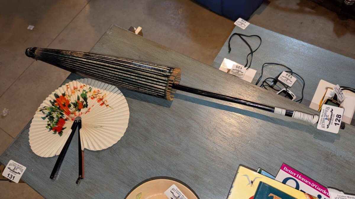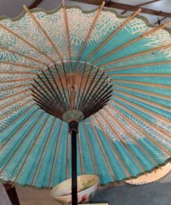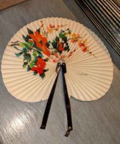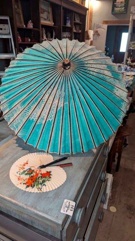 Vintage paper parasol and hand fan