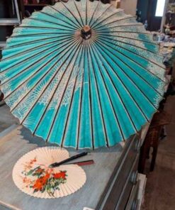 Vintage paper parasol and hand fan
