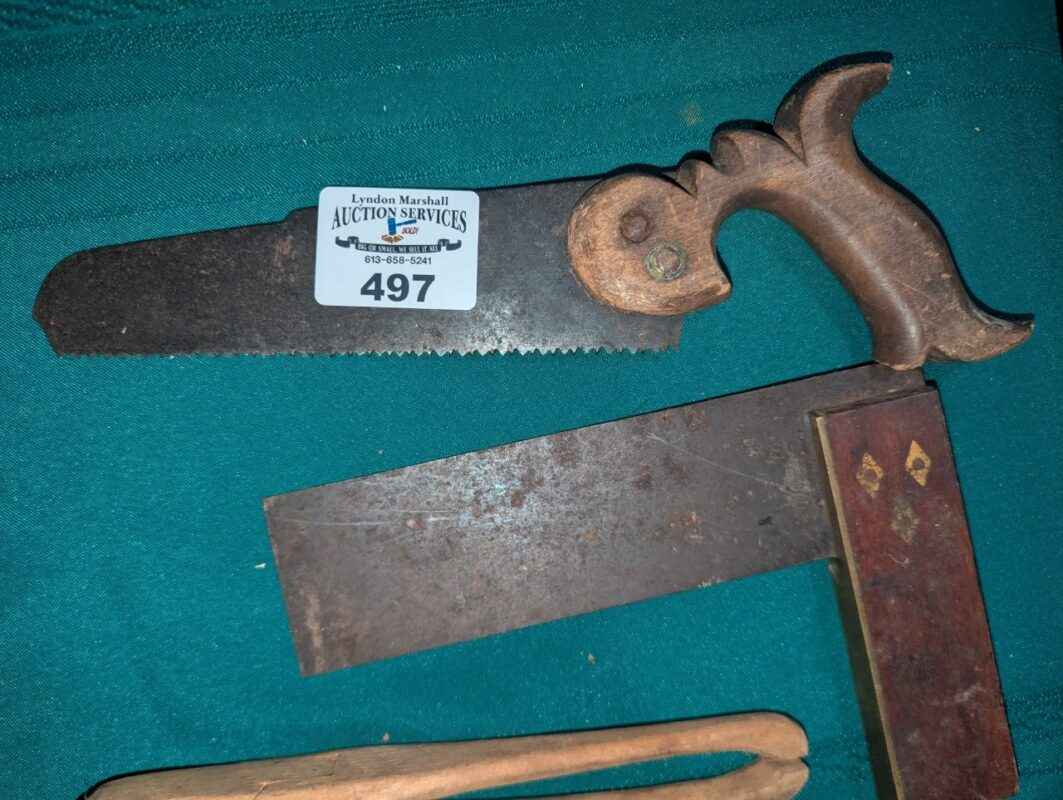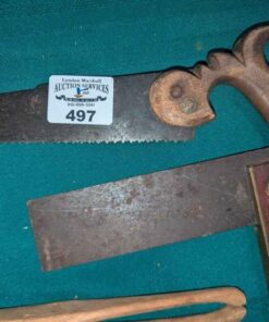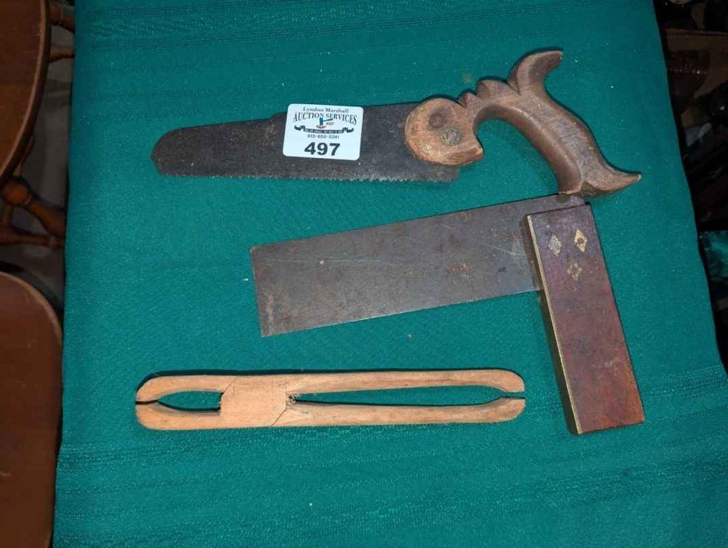 Vintage saw, tongs & Square