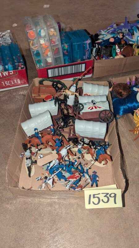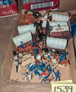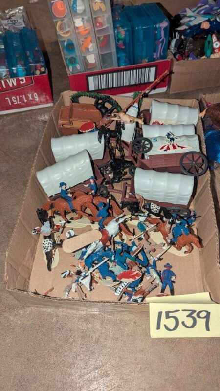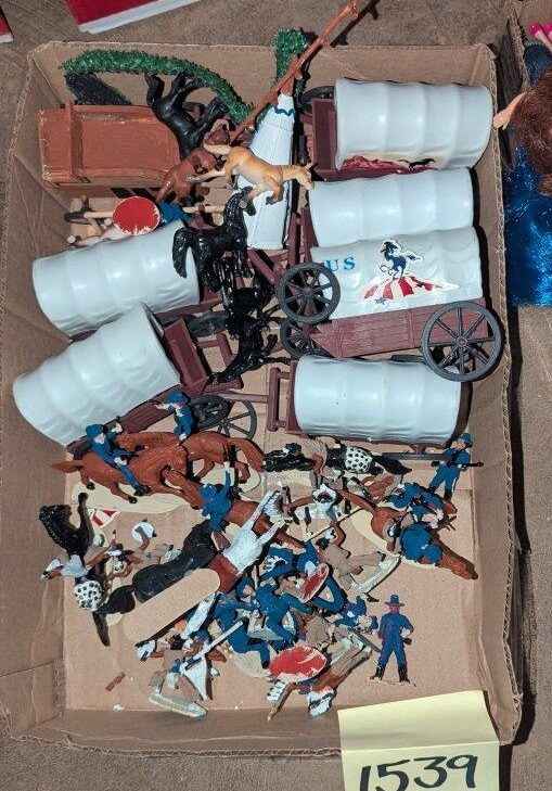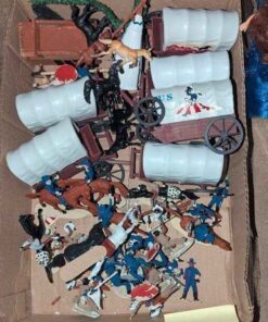 Vintage Western Cavalry, covered wagon play figures
