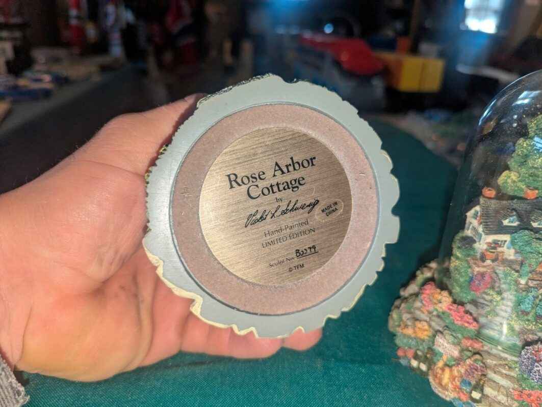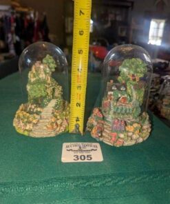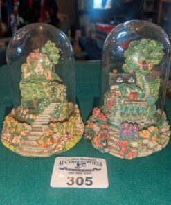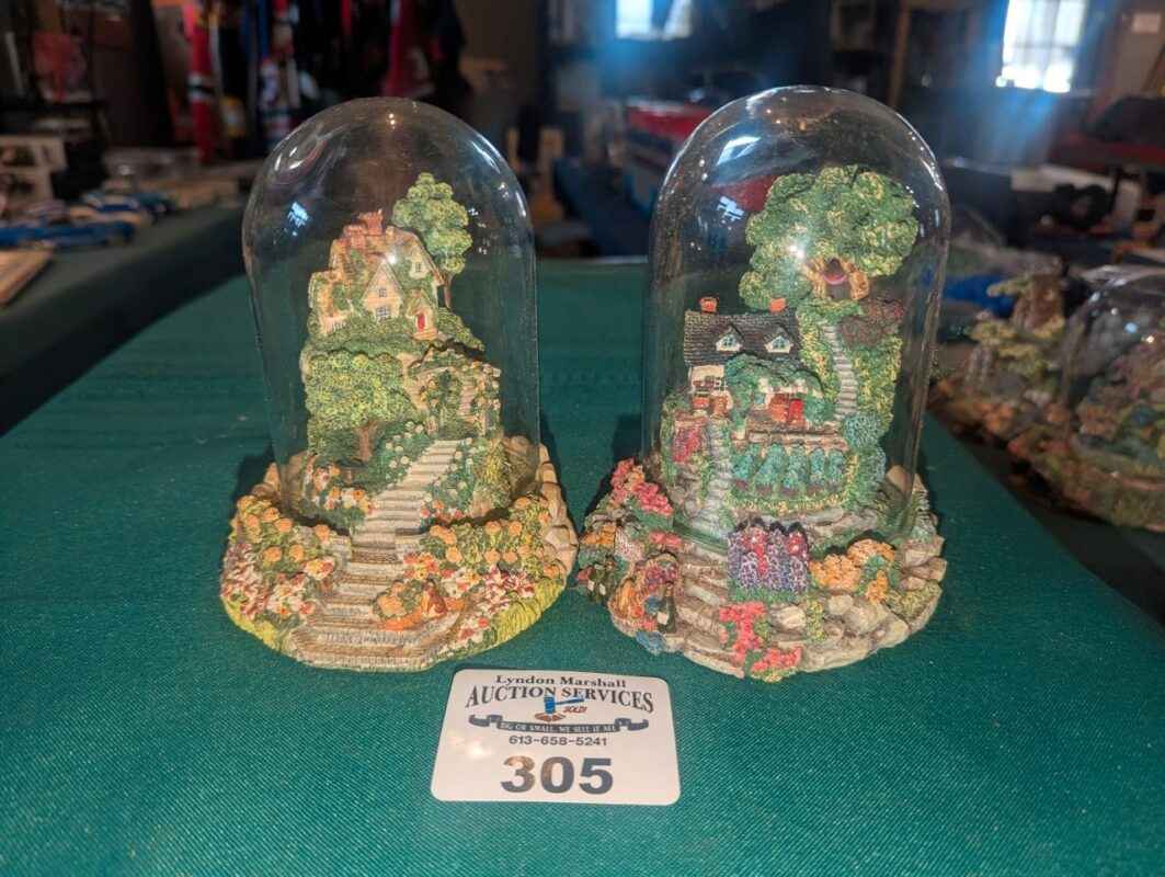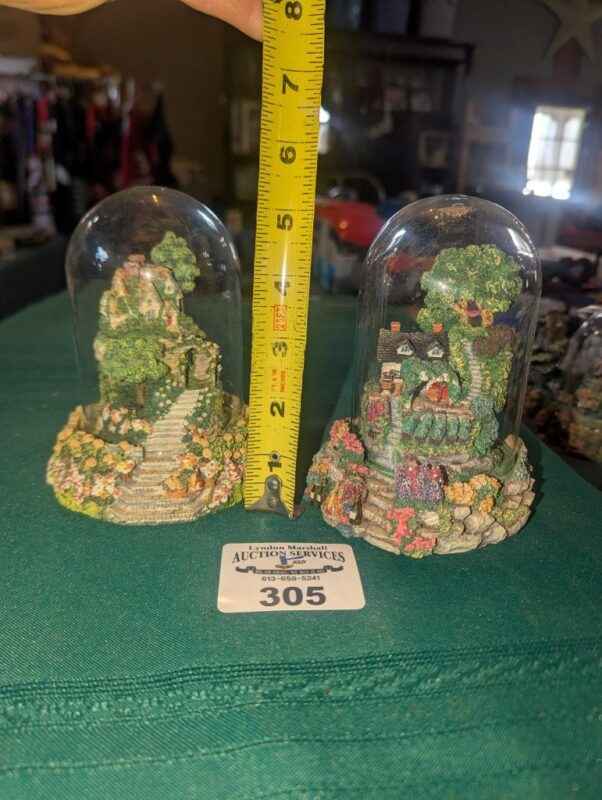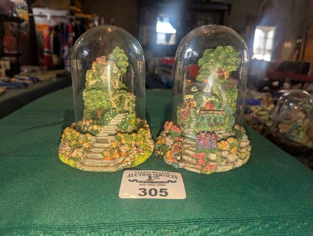 Violet Schwenig glass dome figures: Rose arbor & Grape Arbor cottages