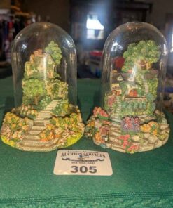 Violet Schwenig glass dome figures: Rose arbor & Grape Arbor cottages