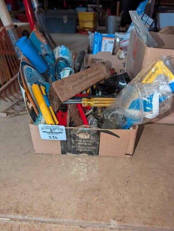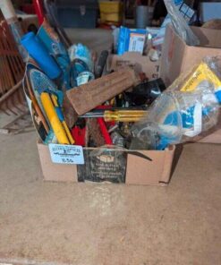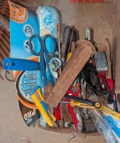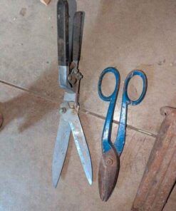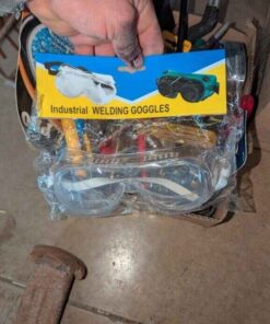 Welding goggles, Steel wedge, Tin snips, misc. hand tools, etc