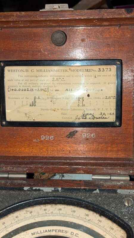 Weston Vintage Milliameter Model 322 No 3373