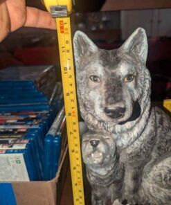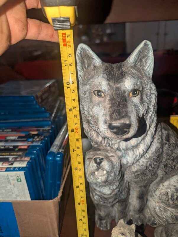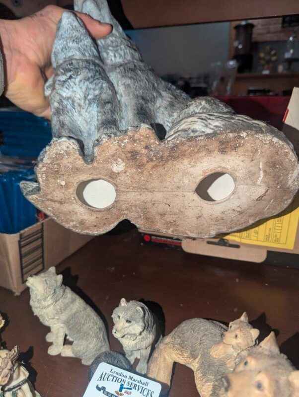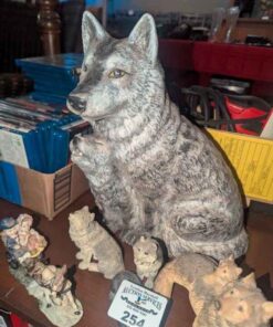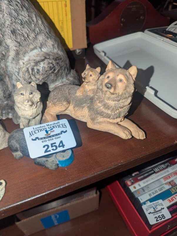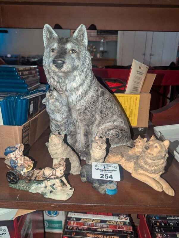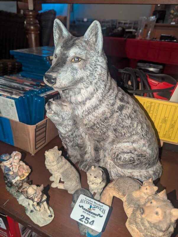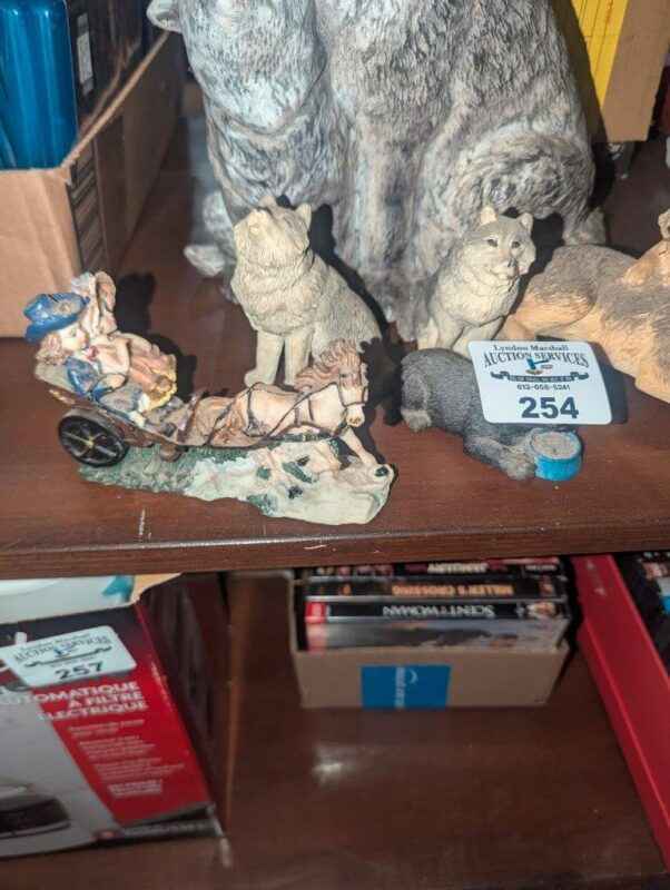 Wolves and horse drawn sleigh statues