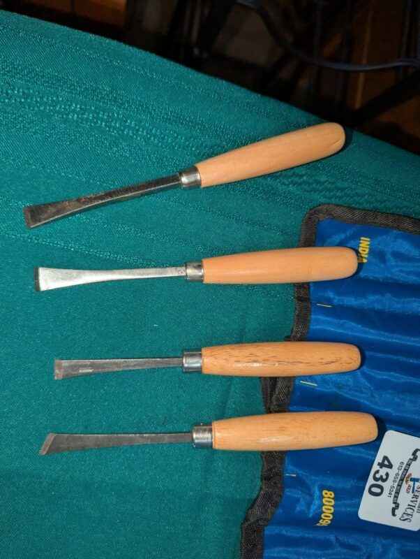 Wood Carving chisels in roll up organizer