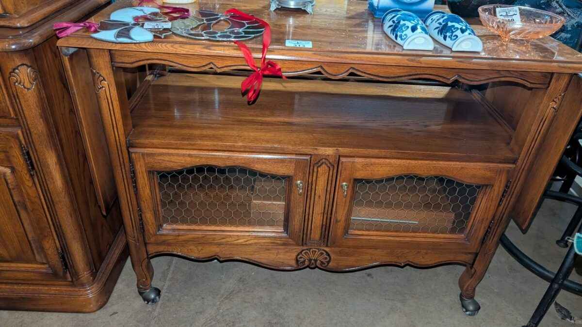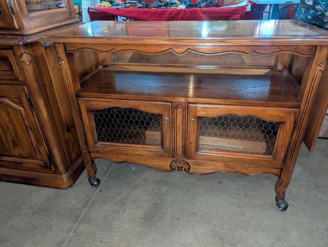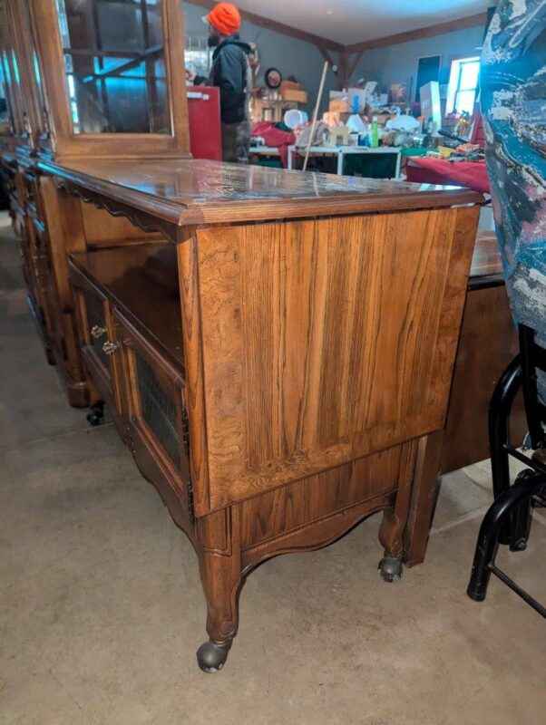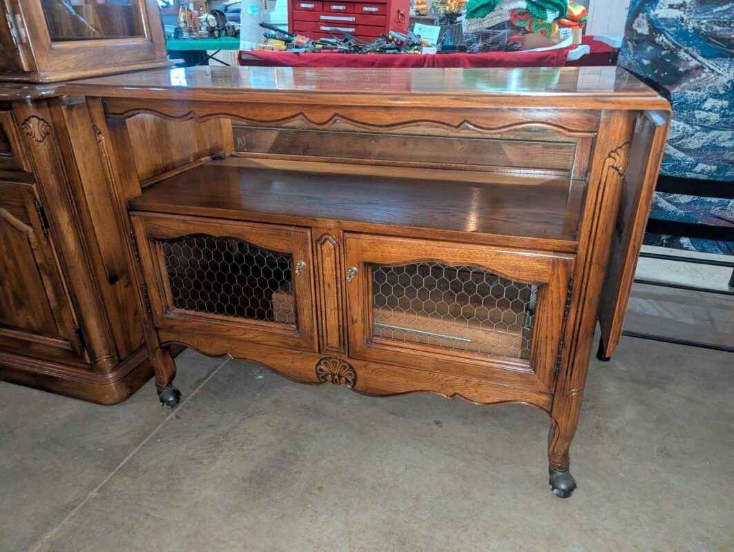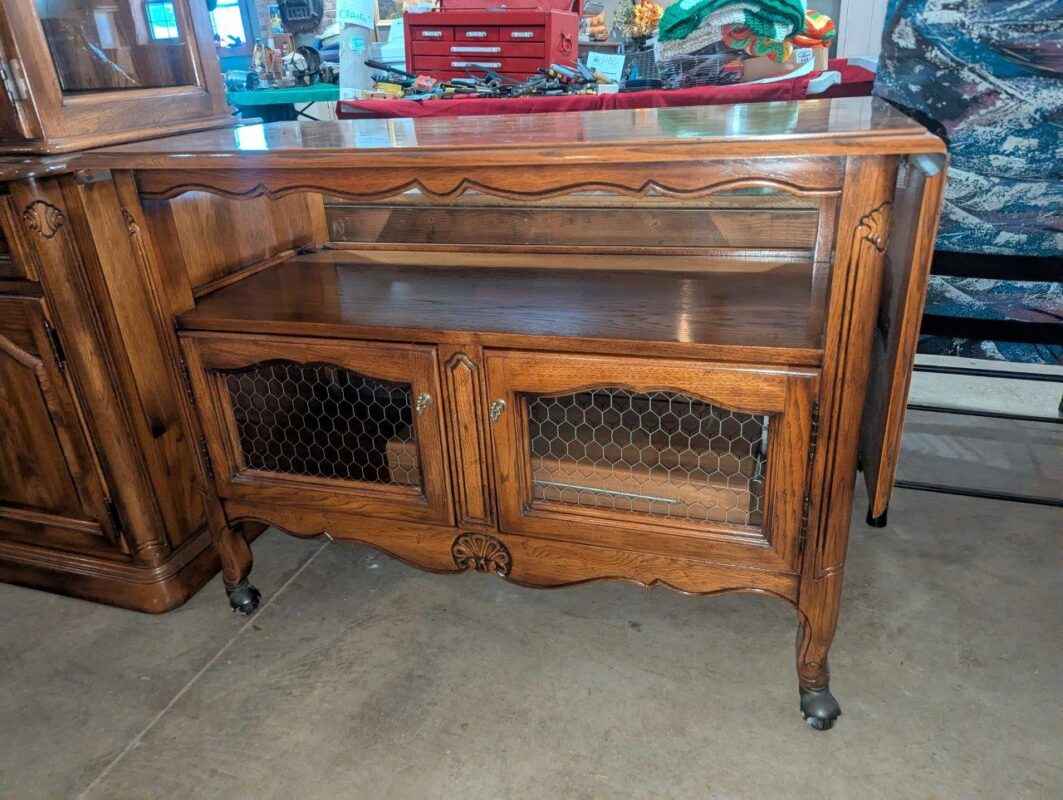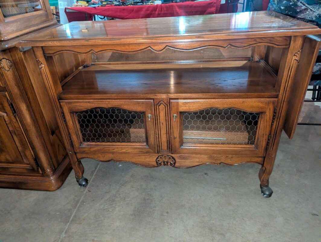 Wooden rolling cabinet/sideboard w/ drop leaf extensions