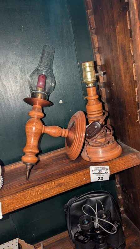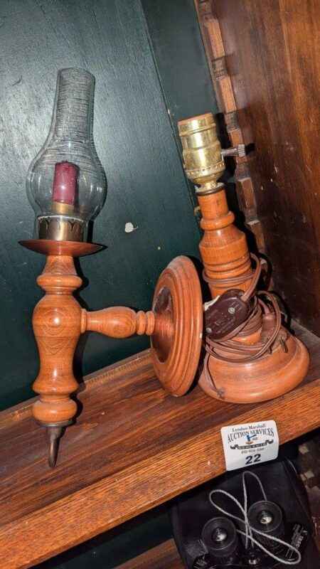 Wooden table lamp and wall mount candle holder
