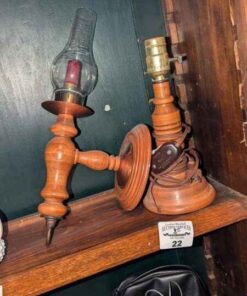 Wooden table lamp and wall mount candle holder